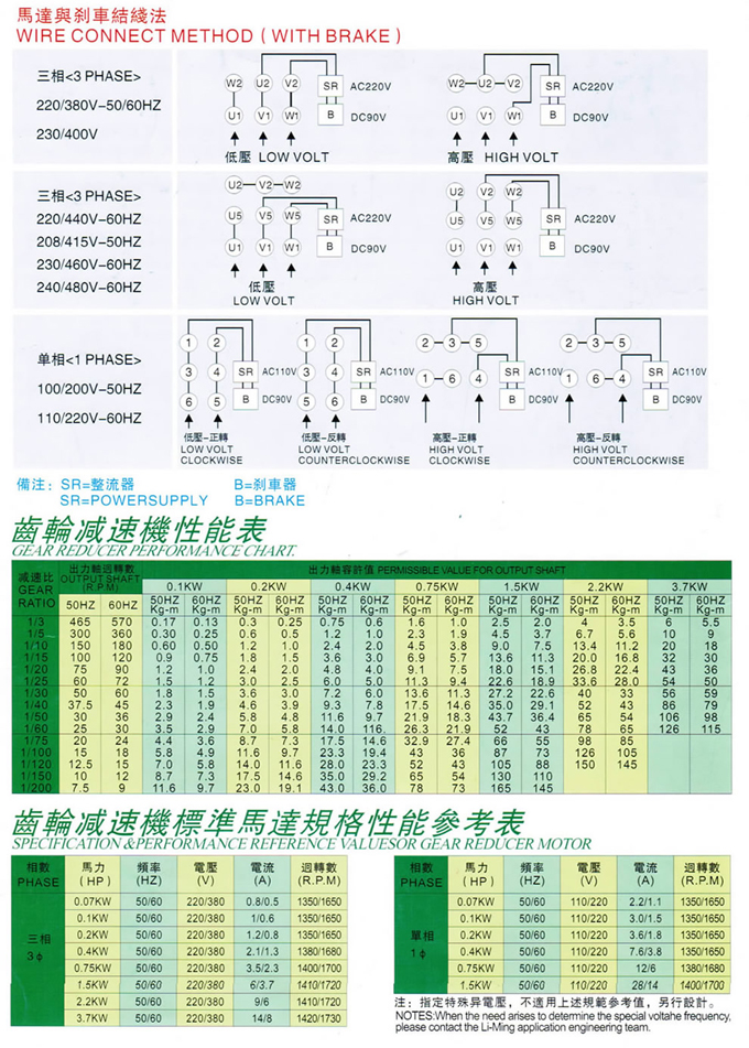 G系列接線方法及性能表 - G全封閉齒輪減速電機(jī)